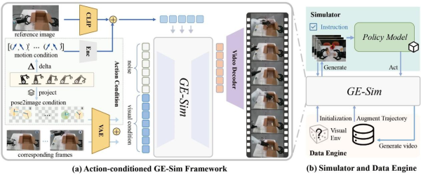 These three components work closely together to form a complete vision-centric robot learning platform: GE-Base provides powerful visual world modeling capabilities, GE-Act enables efficient conversion from vision to action, and GE-Sim supports large-scale policy evaluation and data generation, collectively advancing embodied intelligence.